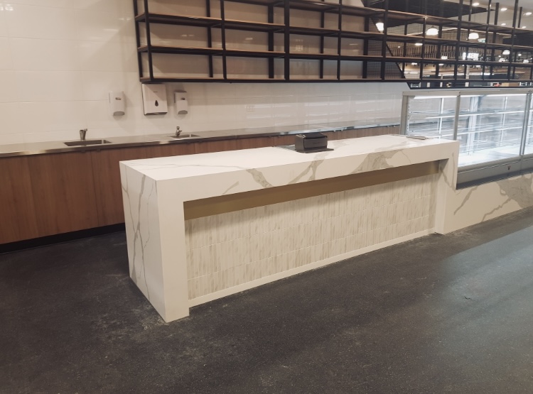 Durable, high‑traffic surfaces for washrooms, service counters, bars, cafes or hotel reception desks. Choose from marble, granite, quartz or engineered surfaces depending on usage and design. -