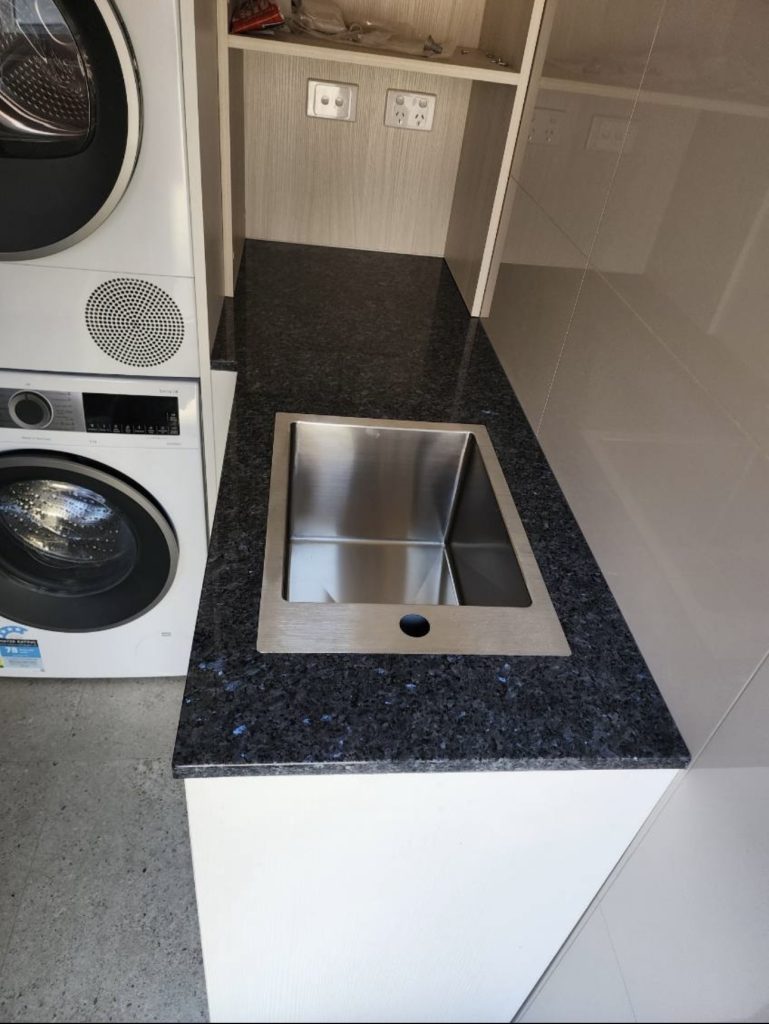 Benchtops in laundries often carry sinks (sometimes troughs), laundry machines, ironing boards or folding surfaces—stone provides the required strength when fabricated well. We can help design supports, thickness and substrate to ensure no sagging or cracking. -